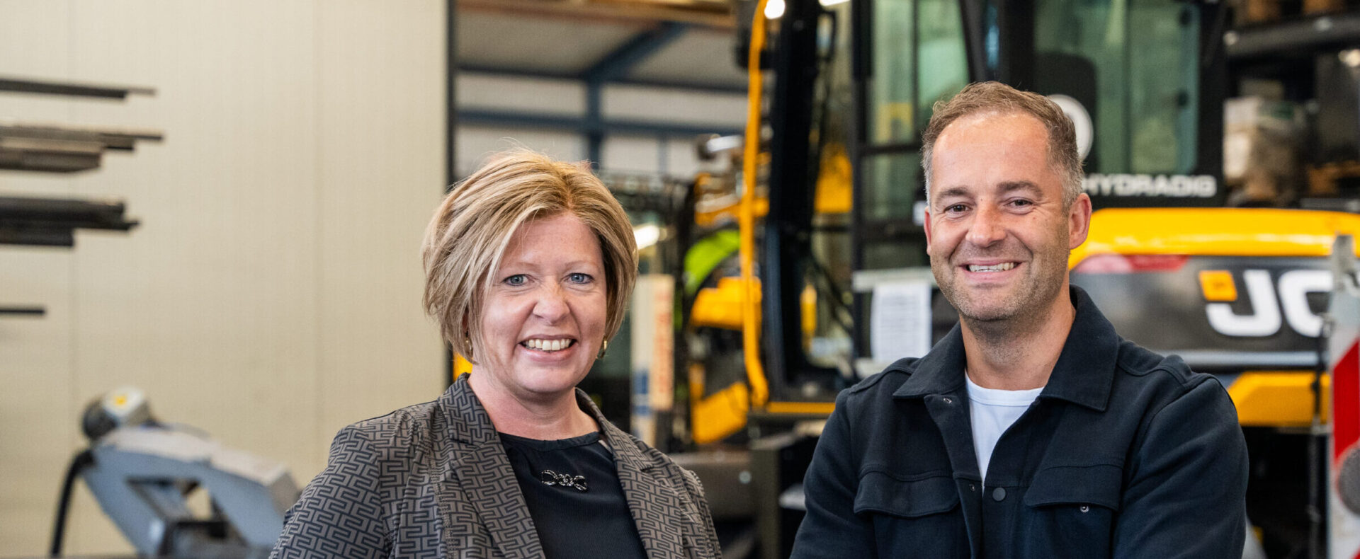 In 2008 begon Gerard als JCB-dealer binnen Berkhof BV, maar in 2016 ontstond de behoefte aan zelfstandigheid. “Onze vader trad uit en wij gingen verder als Bouwmachines Midden Nederland,” vertelt Rianne. “Toen ging het snel. We verhuisden naar onze huidige locatie en stonden ineens helemaal op eigen benen. Dat voelde als een echte sprong in het diepe, maar het was de beste beslissing.”
